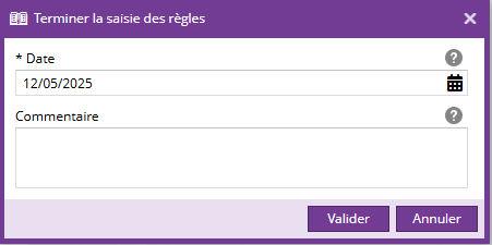 Cliquer sur Terminer la saisie des règles