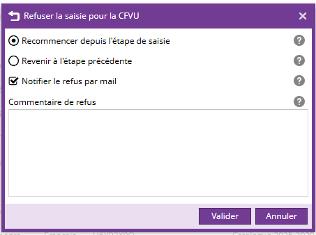 Une pop-up apparaît avec la date de validation (obligatoire) et un commentaire (facultatif).