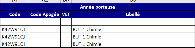 Pour chaque formation de la composante, le rapport reprend la structure maquette de la formation et liste :