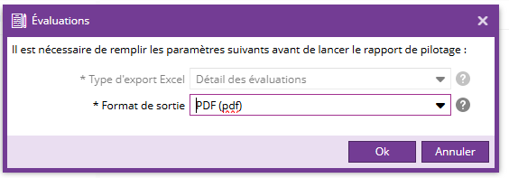 Ce paramètre est disponible uniquement si la gestion des compétences a été activée. Ce paramètre est disponible uniquement si le format de sortie est Excel Choix du tableau exporté au format Excel.