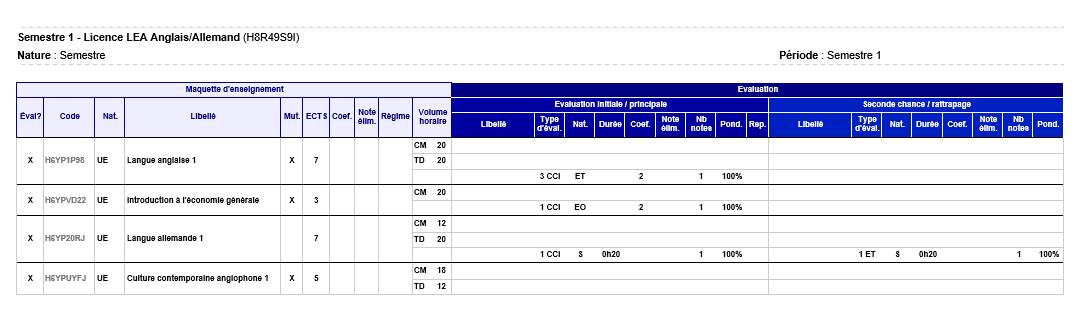 Au format Excel, le fichier généré est soit le tableau des MCC, soit le tableau des MCCC.