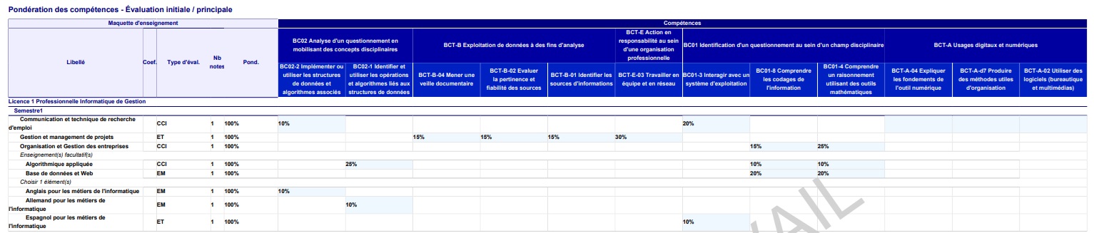Le rapport contient toutes les informations des champs MCC saisies au niveau de l'onglet Pilotage des ELPs de plus petit niveau.