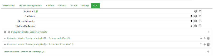 Cliquer sur le bouton + pour ajouter une modalité de contrôle de connaissance