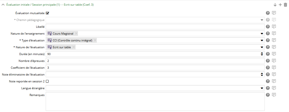 Ce champ est un texte riche qui vous permet de renseigner des remarques importantes sur le contrôle de connaissance. |