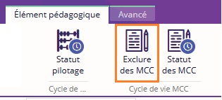 Les ELPs peuvent maintenant être exclus des MCC, grâce au bouton Exclure des MCC disponible au niveau de l'onglet Élément pédagogique.