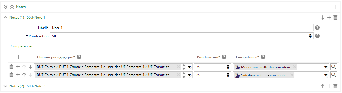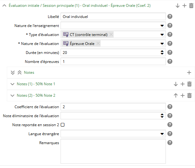 Une évaluation peut être constituée de plusieurs notes, définies comme suit :