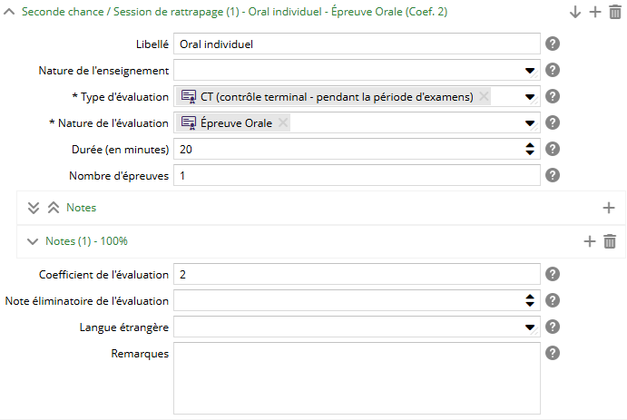Un ELP peut contenir plusieurs évaluations de seconde chance / session de rattrapage. Les attributs sont les mêmes que ceux de la session principale.