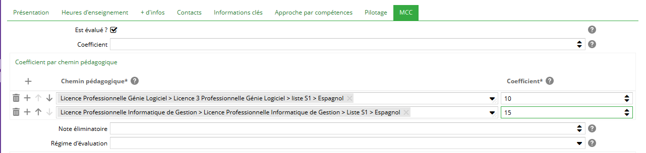 Cet attribut est disponible uniquement pour les ELP mutualisés. Si un coefficient spécifique doit être défini sur un chemin pédagogique, une ligne sera ajoutée en renseignant :
