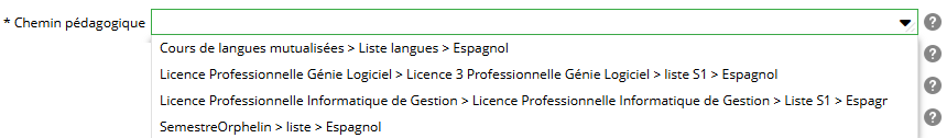 Si l'ELP est mutualisé, et si l'évaluation a été déclarée comme non mutualisée (donc définie sur un chemin pédagogique), alors cet attribut n'est pas modifiable, il possède automatiquement la valeur du chemin pédagogique de l'évaluation. |