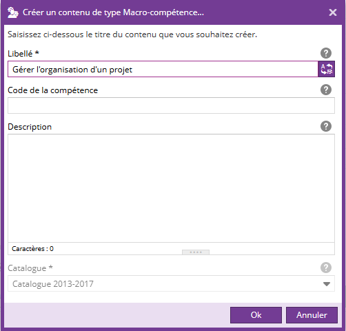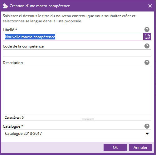 Ecrire une description de la nouvelle macro-compétence. Le nombre de caractères est indiqué en bas de champ. |