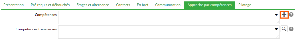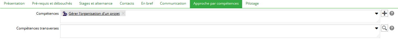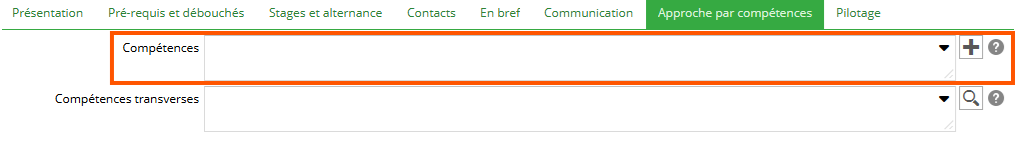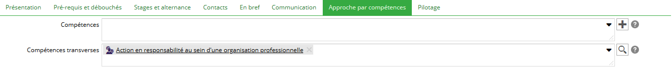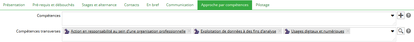 Le champ Compétences est dédié aux macro-compétences rattachées à une formation. Elles sont considérées comme des macro-compétences non transverses.