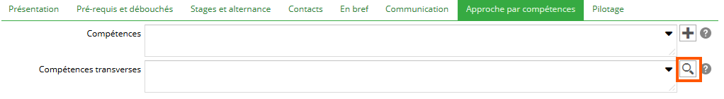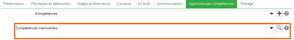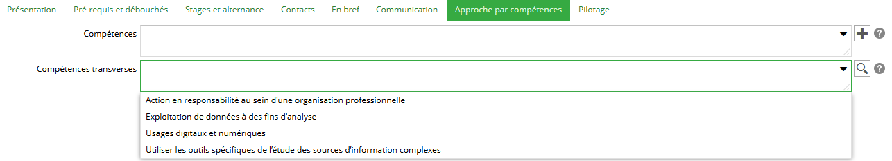 Le champ Compétences transverses est dédié aux macro-compétences qui ne sont pas rattachées à une formation.