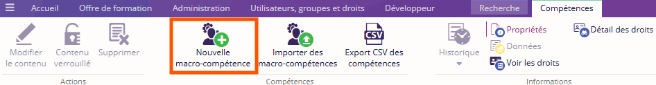 Cliquer sur Nouvelle macro-compétence, groupe Compétences, onglet Compétences