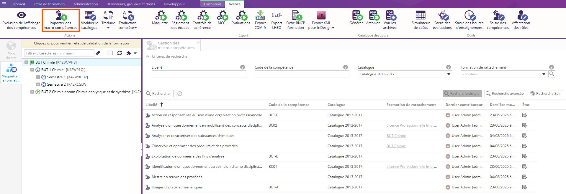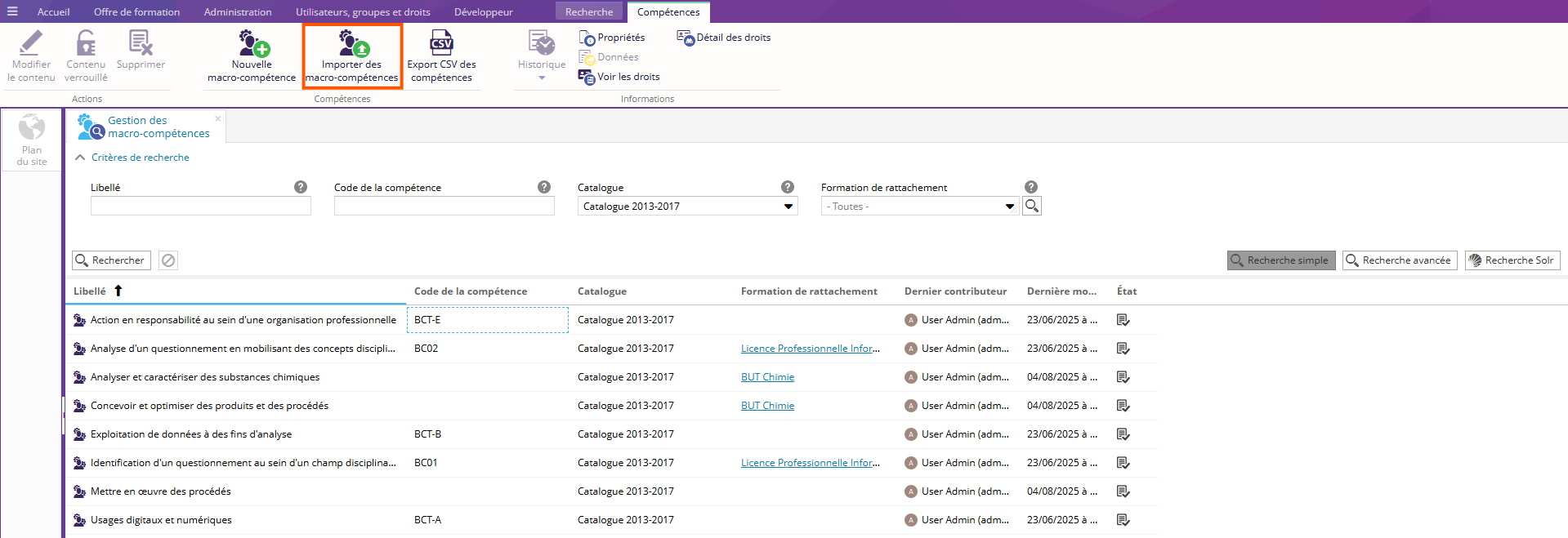 Il est possible d’importer des macro-compétences à l’aide d’un fichier CSV :
