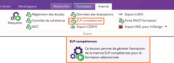 • Depuis une formation , au niveau du groupe Export de l'onglet Avancé.