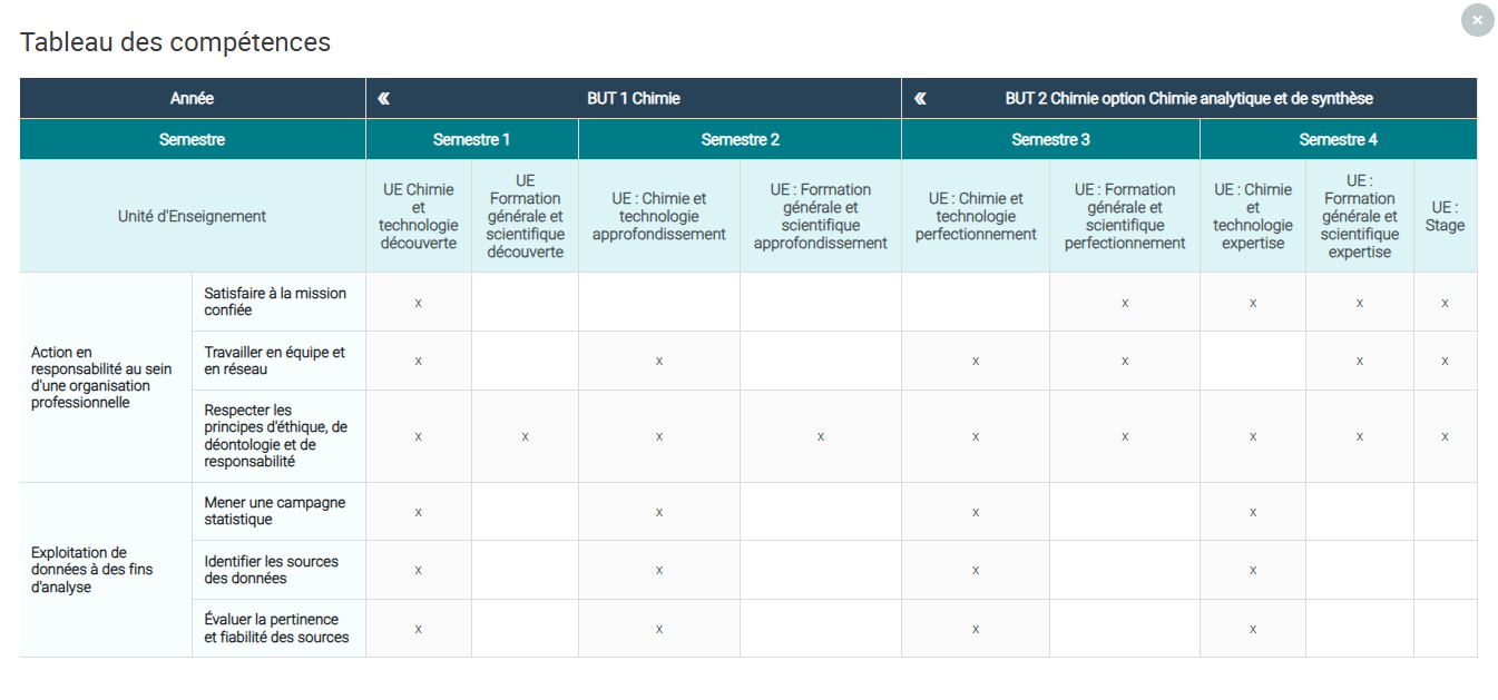 Le tableau d'acquisition des compétences illustre, de façon graphique, les macro-compétences et les micro-compétences attachées à la formation.
