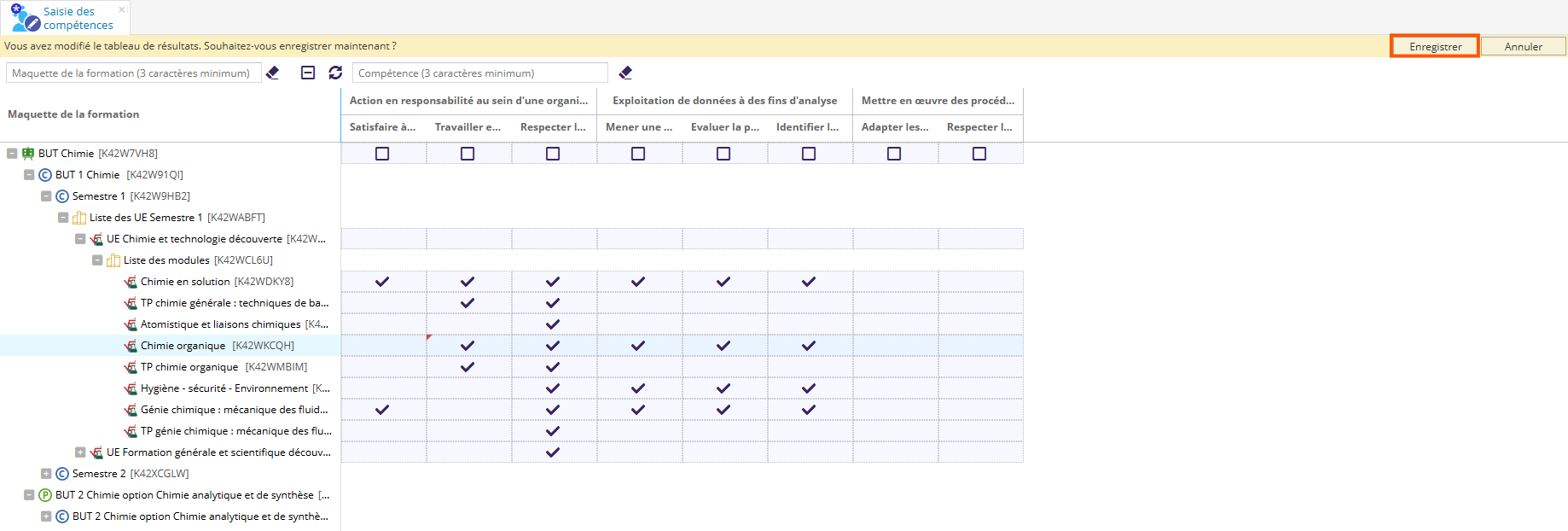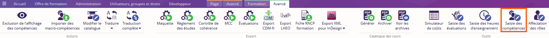 L'outil "Saisie centralisée des compétence" est disponible sur les formations.