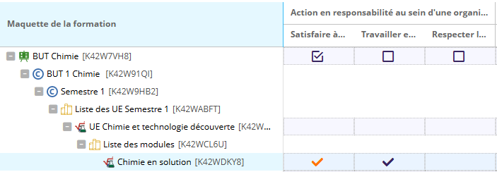 Si la micro-compétence est reliée à un UE alors elle est cochée à l'aide d'une croix