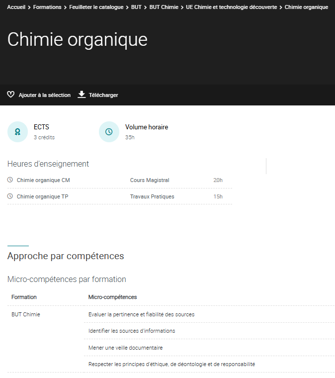 Les micro-compétences attachées à l'ELP sont affichées dans la rubrique "Approche par compétences"