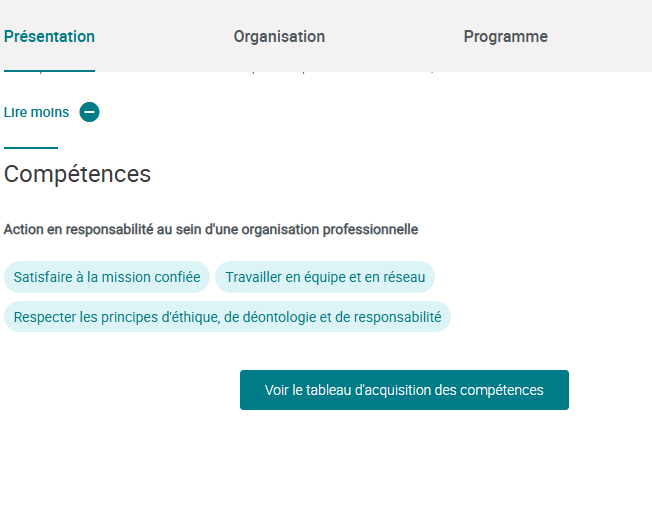 Les macro-compétences et micro-compétences d'une formation sont affichées sur la fiche formation, rubrique Compétences :
