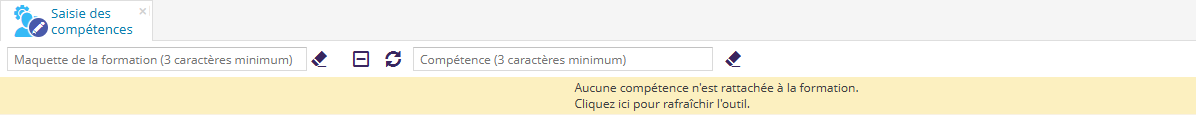 Si aucune compétence n'est rattachée à la formation, un bandeau jaune "Aucune compétence n'est rattachée à la formation.