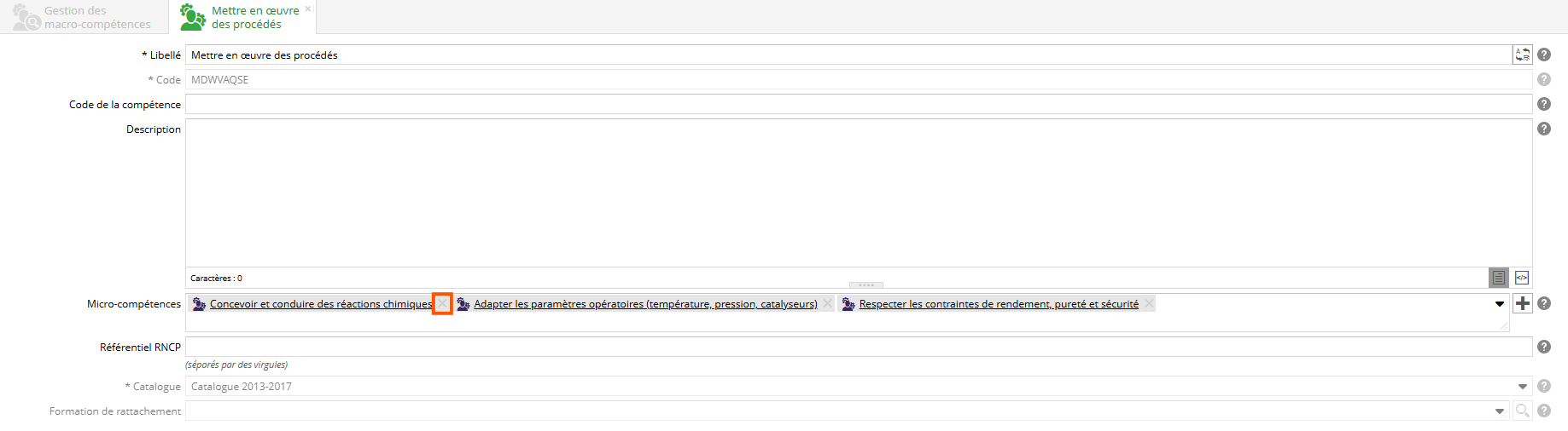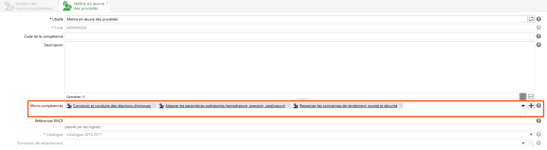 La fenêtre de la macro-compétence s'ouvre avec un champ Micro-compétences