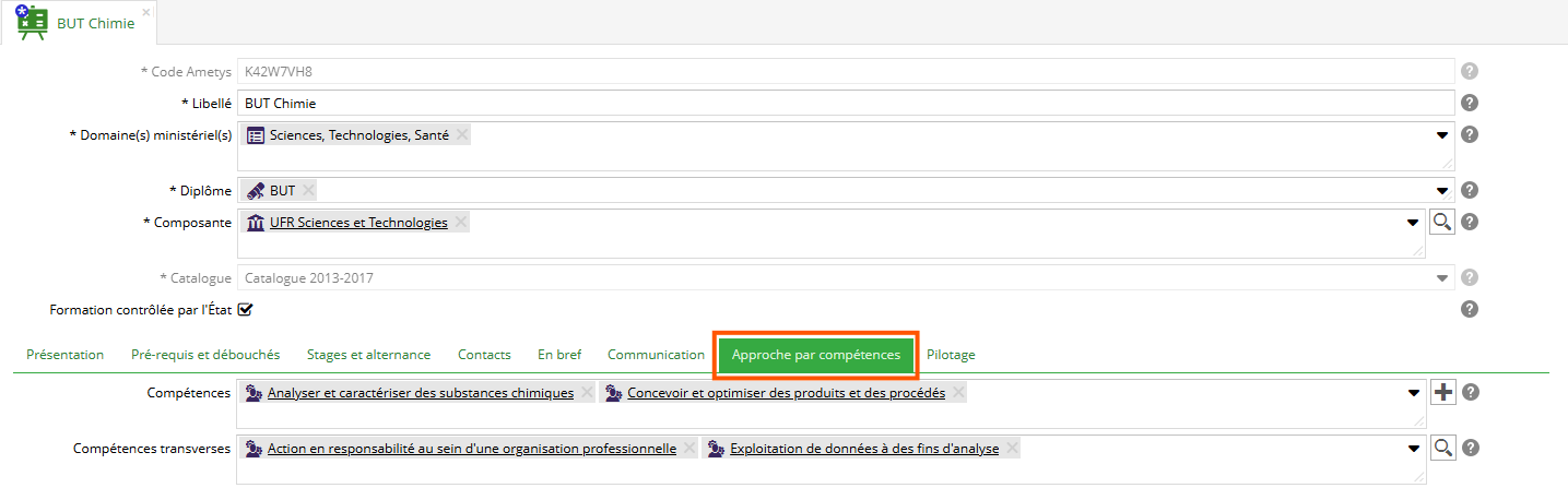Ouvrir une formation puis cliquer sur l'onglet Approche par compétences