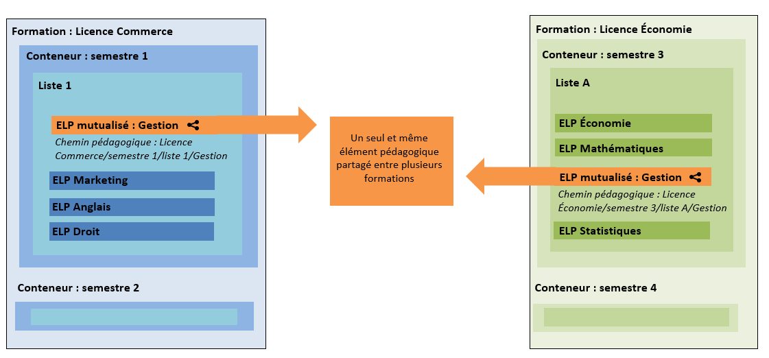 Quand un ELP est mutualisé, il est présent sur plusieurs chemins pédagogiques :