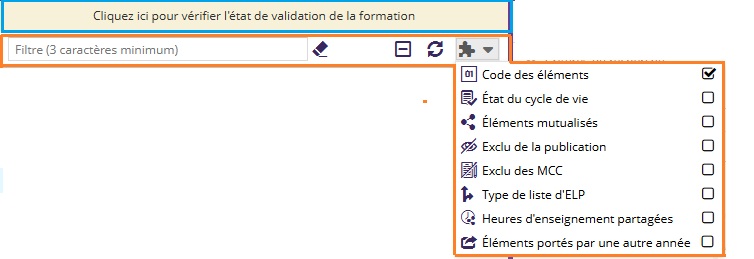 Un clic sur celle-ci vérifie l'état de validation global de la formation.