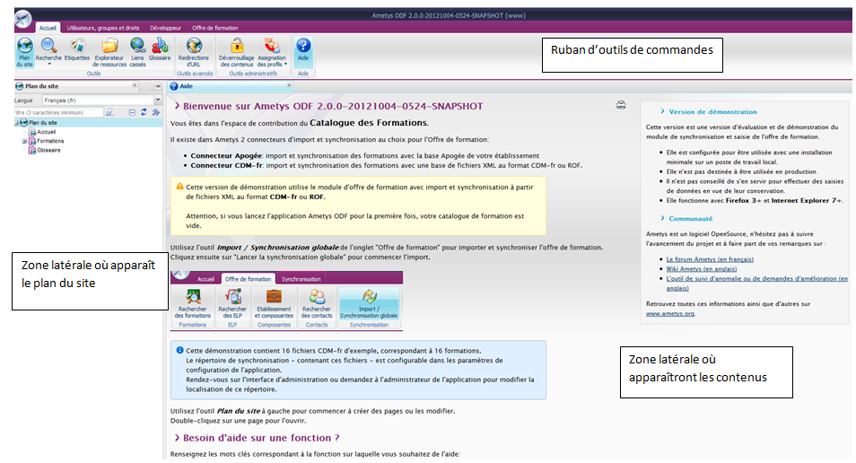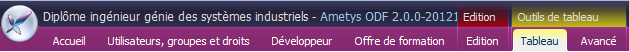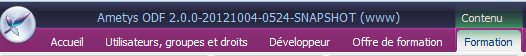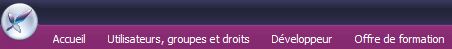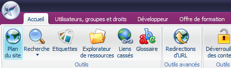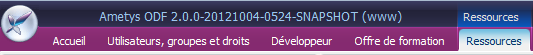 Le ruban par défaut de la version de démonstration possède quatre onglets statiques (en fonction des droits) qui sont :