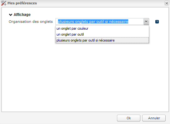 Dans vos préférences, vous pouvez sélectionner la méthode de gestion des onglets de la zone principale :