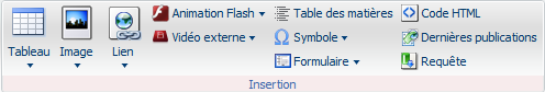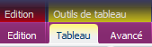 La création d'un tableau en mode édition d'un contenu ouvre un groupe Outils de tableau et sélectionne l'onglet Tableau. On remarque que le groupe d'onglets Édition est aussi disponible, ce qui permet à l'utilisateur de revenir dans le menu d'édition du contenu sans quitter le travail en cours sur le tableau :