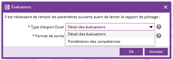 Le rapport Évaluations, disponible sur les conteneurs de type année, s'enrichit également du tableau de pondération des compétences.