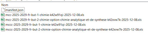 Exemple de contenu du fichier zip généré au format Excel pour une formation :