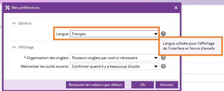 L'interface ainsi que les mails s'adaptent automatiquement à ce choix.
