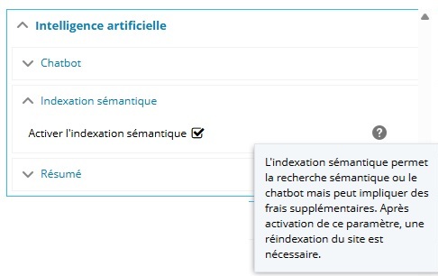 L'indexation sémantique s'active ensuite via un paramètre de configuration du site :