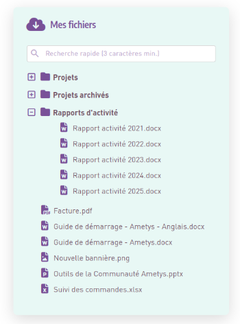 Il est possible de cliquer sur un fichier depuis le service Ametys pour l'ouvrir directement dans OneDrive.