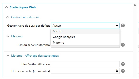 L'utilisation des statistiques Matomo (ex Piwik) nécessite des paramètres de configuration et de site.