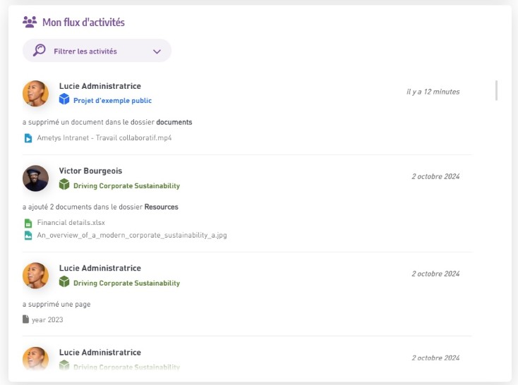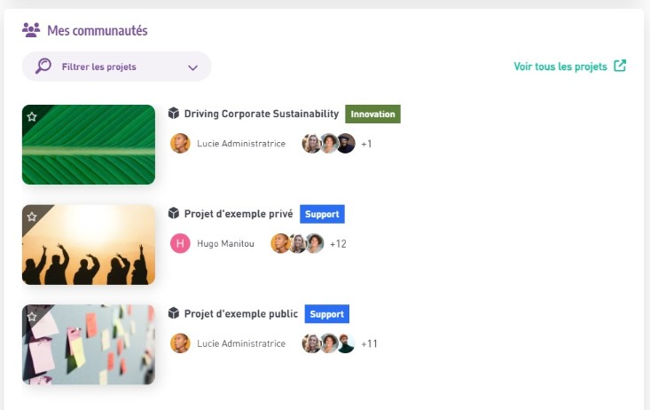 Deux services relatifs aux espaces projets sont maintenant disponibles: